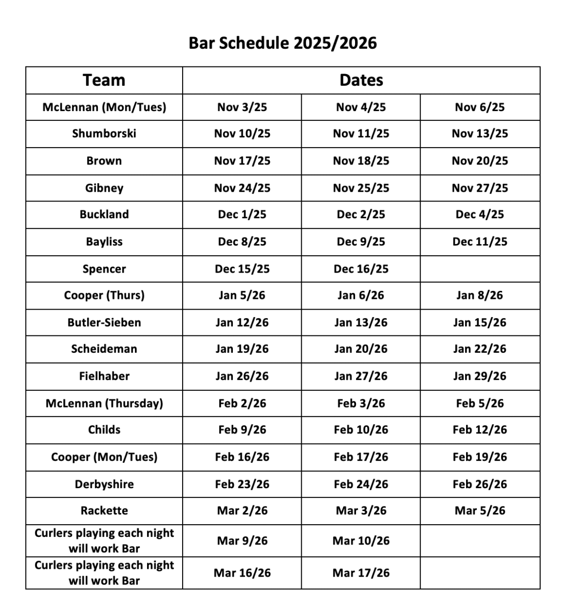 From November through February on most Wednesdays, the club will be open from noon to 2:30 for curlers and non curlers alike for the lunch deal of the county!